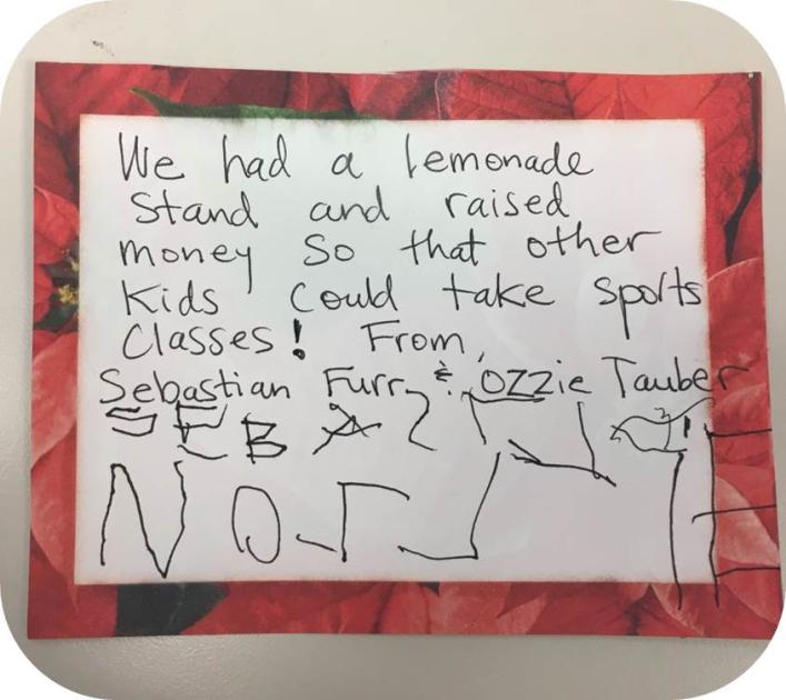 In December, we received a gift from our youngest donors yet. Two four year-old members held a lemonade stand to raise money so that other kids could participate in sports programs. They were having so much fun in youth basketball and wanted to make sure that sports were available to all youth in their neighborhood. These young donors are an inspiration to us all as we begin our Annual Giving Campaign season.
